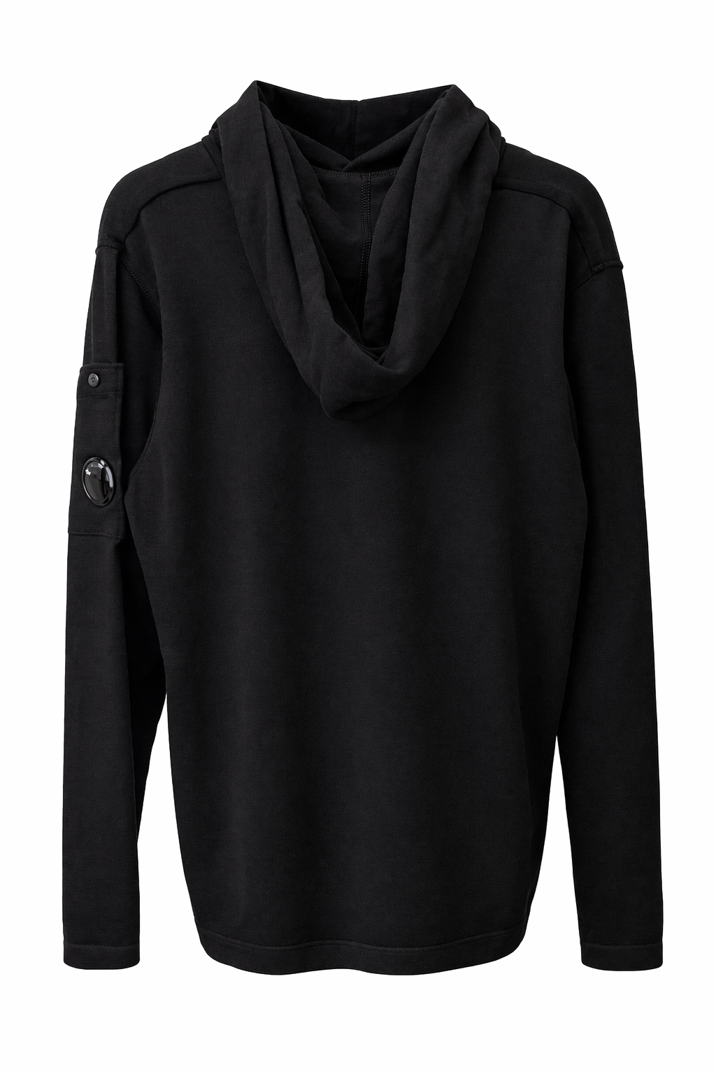 C.P. Company mid weight cotton hoodie in black. Modern slim fit.
