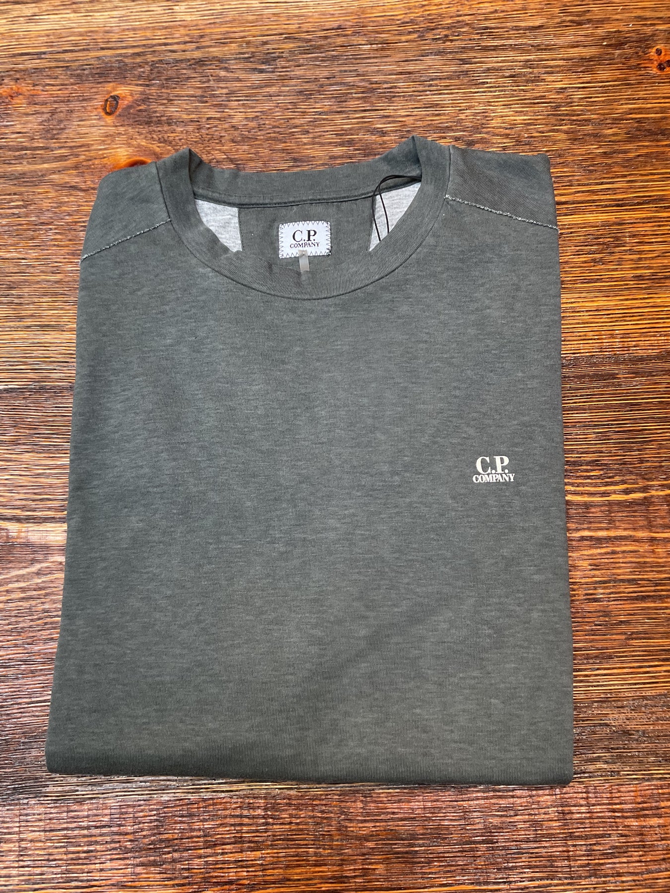 C.P. Company pure cotton small logo knitted tee shirt. Made up in a neutral gun metal colour. Modern fit and appropriate for both casual and dressier occasions.