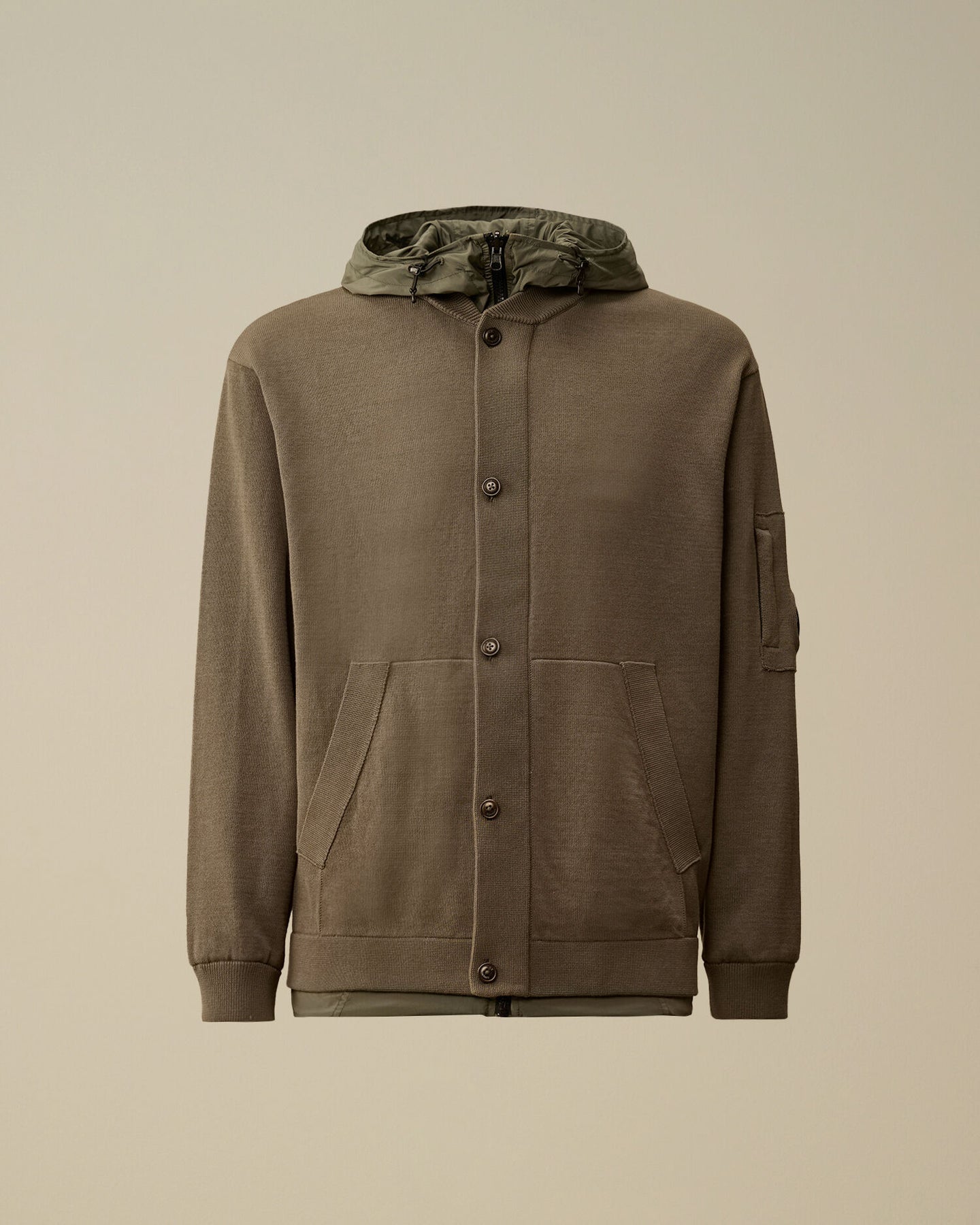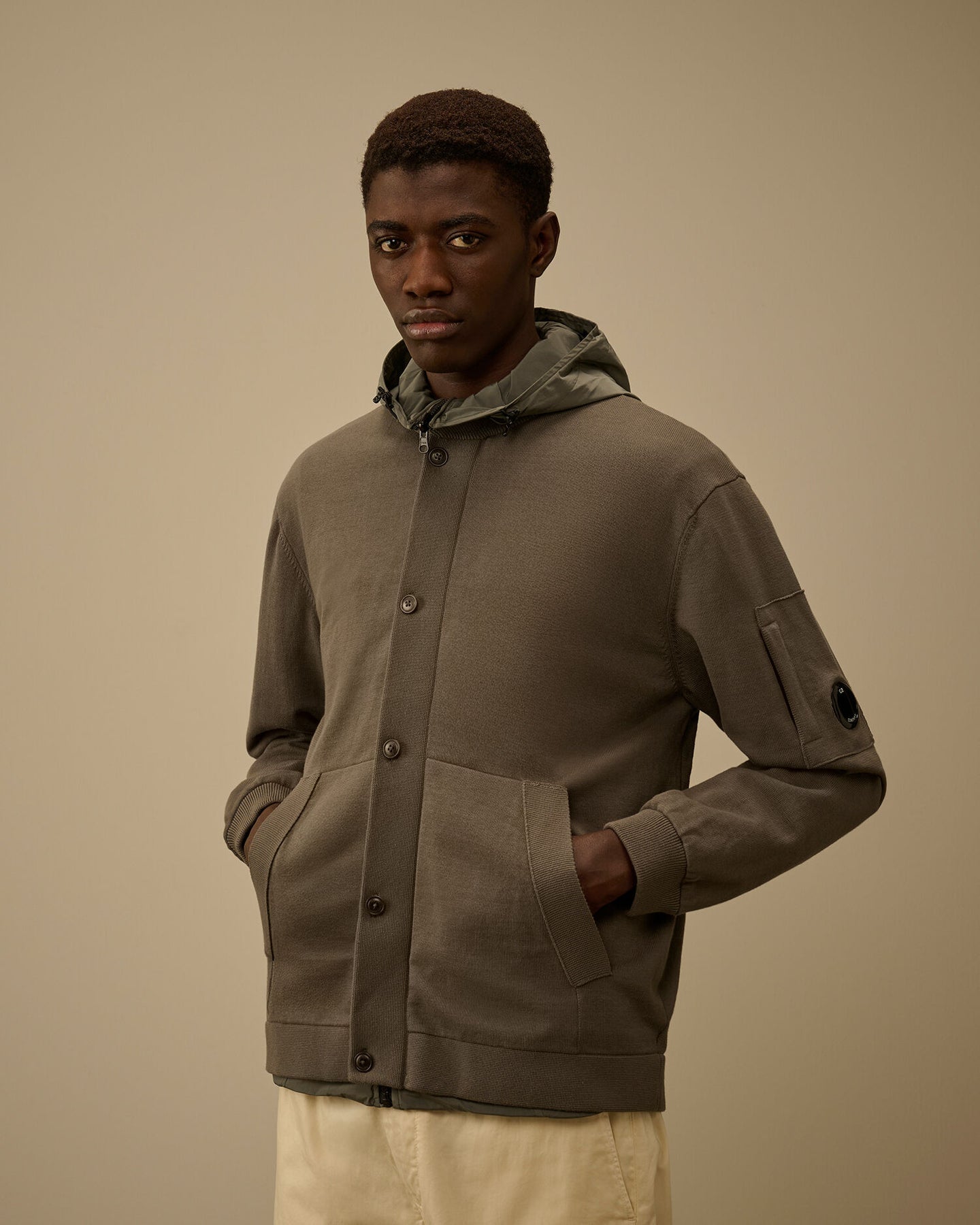 C.P. Company new cotton and nylon knitted reversible jacket in a beautiful gunmetal green. Made up in a regular fit and perfect for that in between weather.