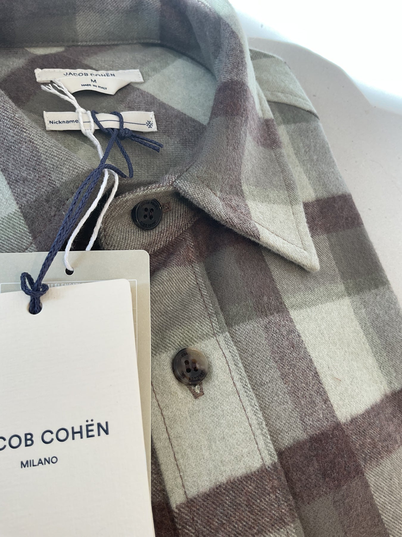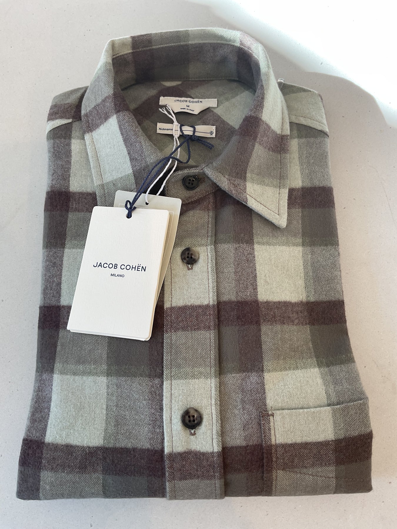Jacob Cohen long sleeve classic sports shirt. Pure cotton with a big bold block check in earth tones. Slim fit and made in Italy.