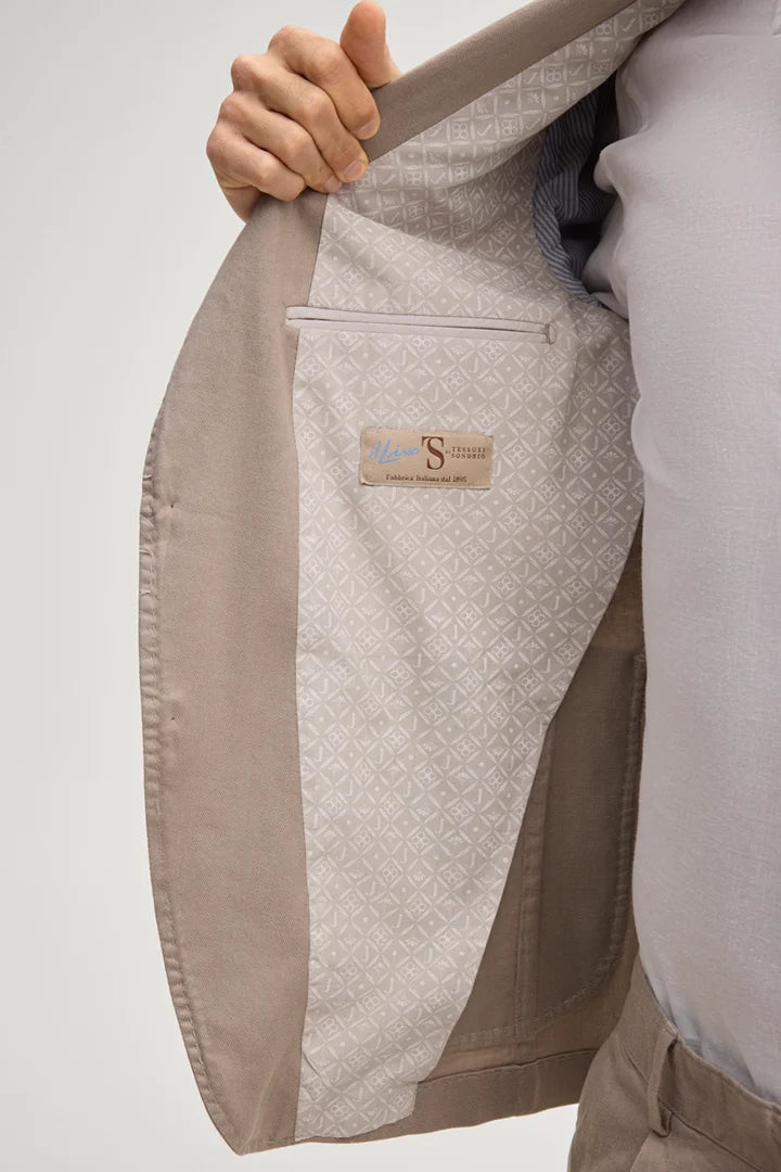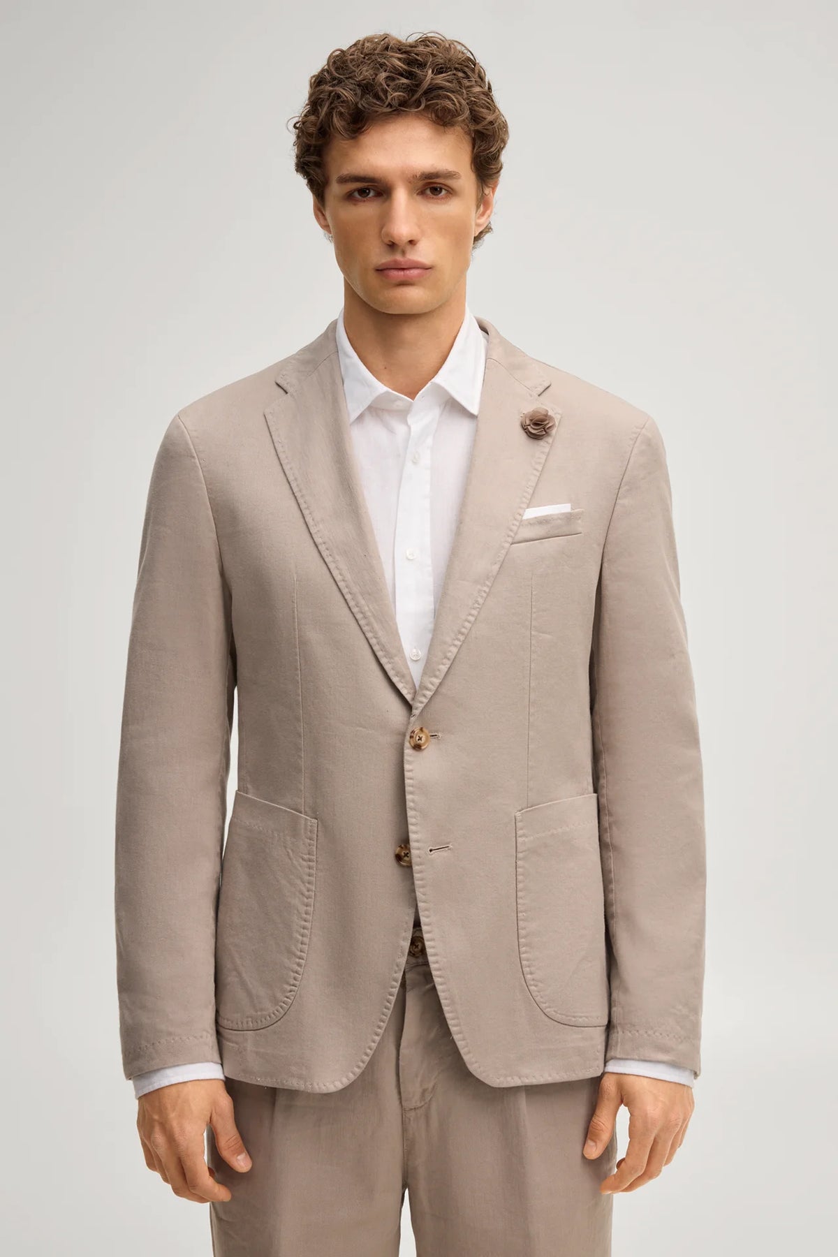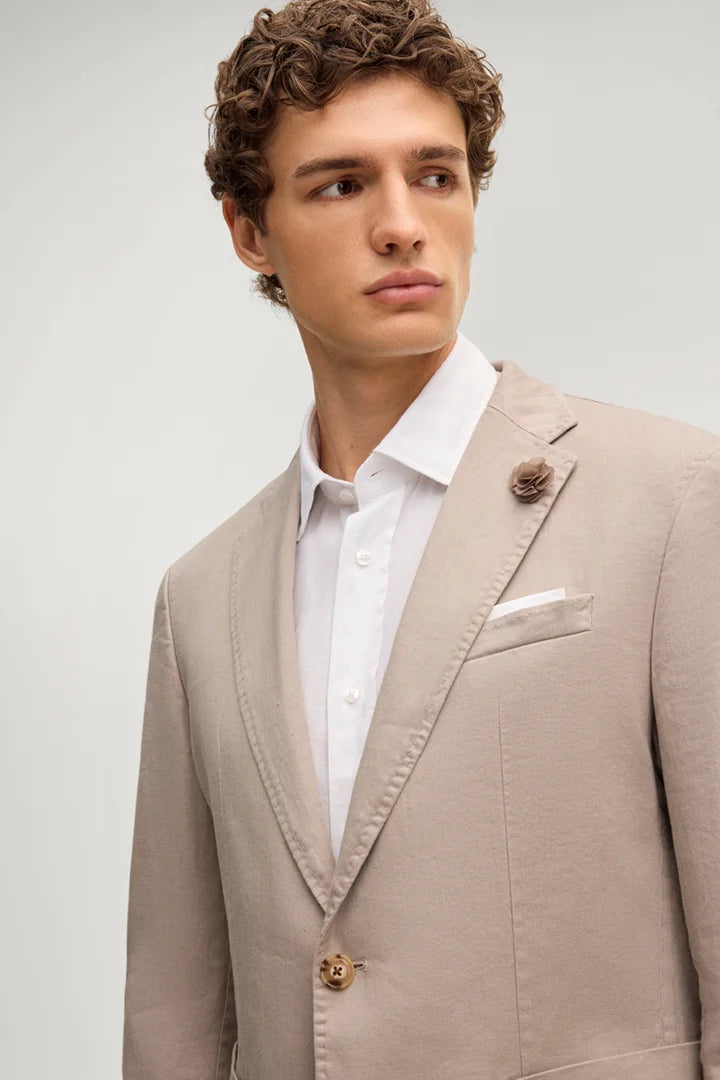 Joop classic two button slim fit Hoverest sports jacket. Made up in a washed cotton and linen blend. Neutral stone colour.