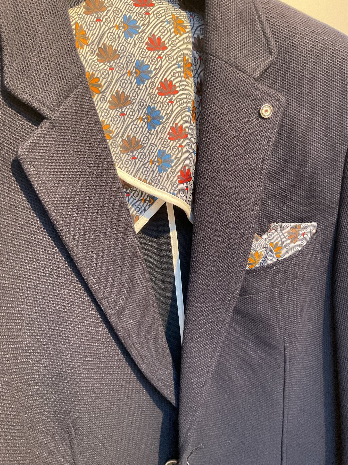 Blue Industry classic two button waffle blazer in dark navy. Perfect for all four seasons and pocket square that is fully removable.