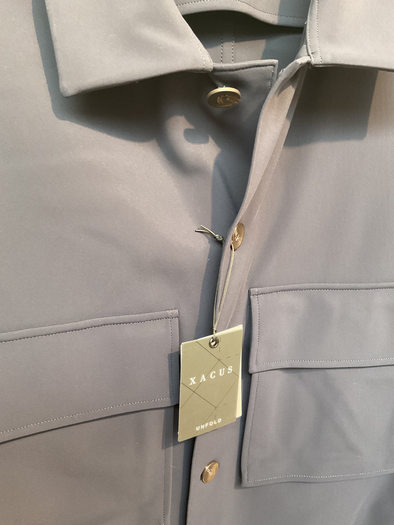 Xacus classic long sleeve button overshirt with front pocket. Made up in a technical fabrication and in a deep navy colour. Modern fit and made in Italy.