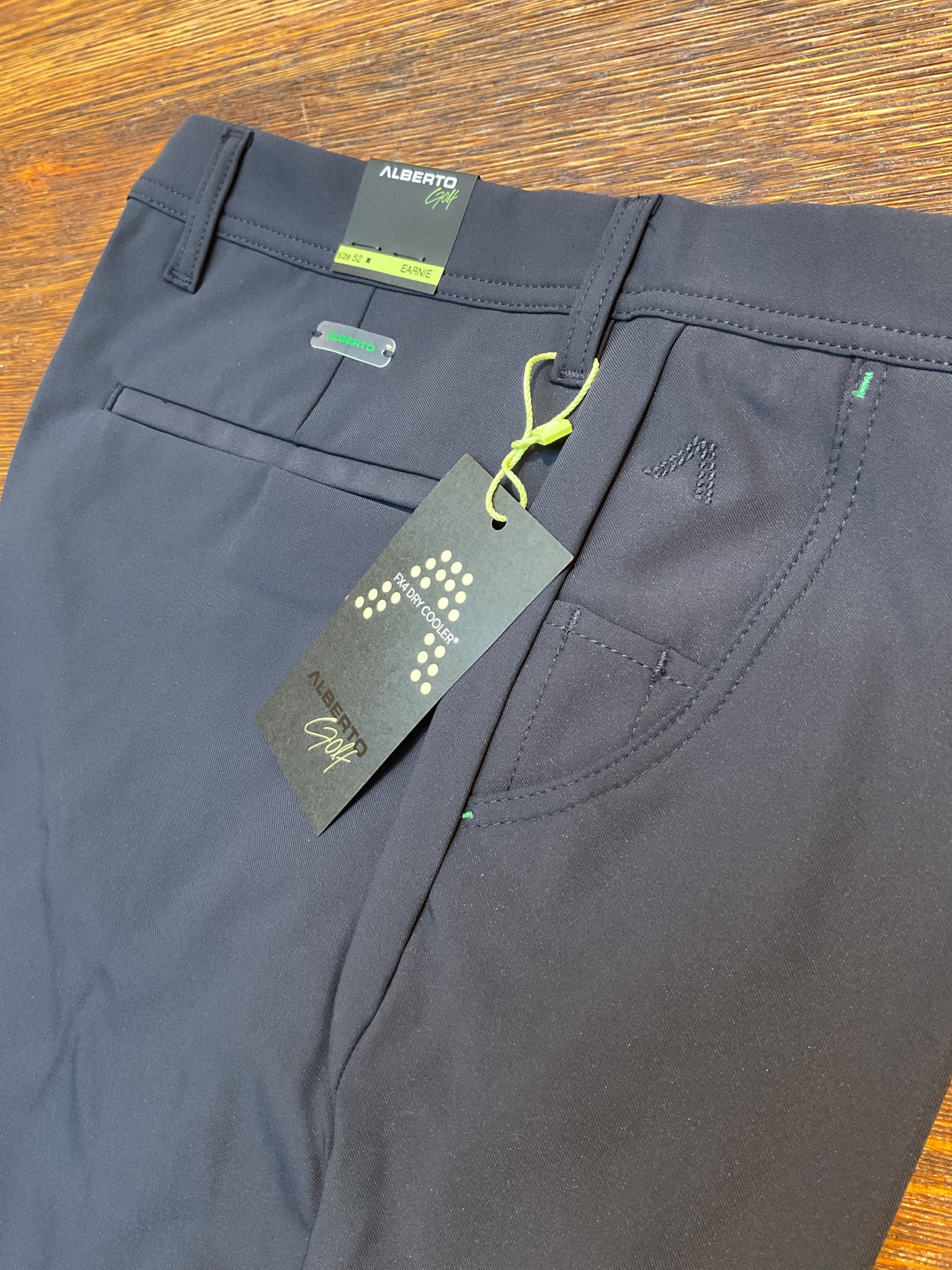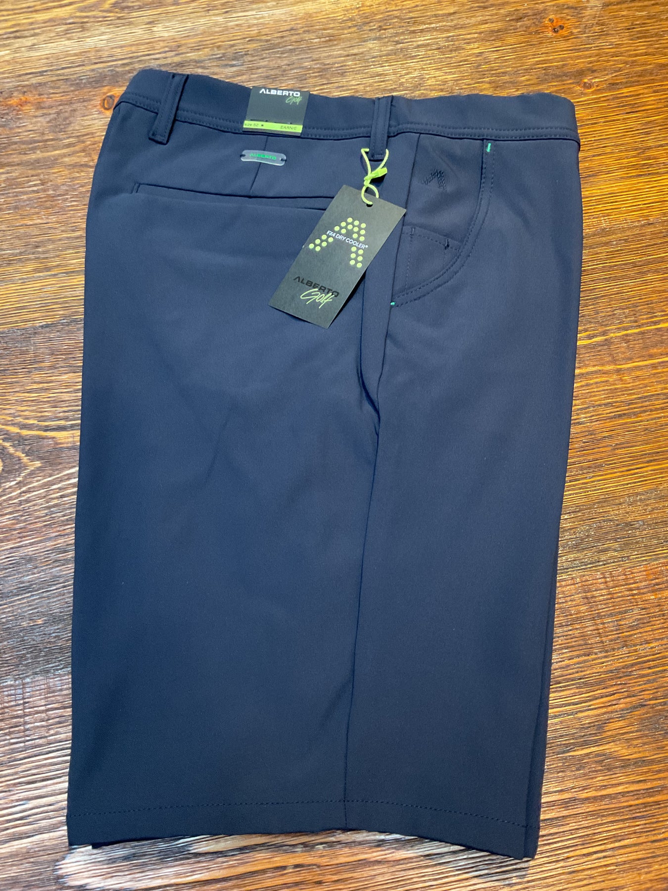 Alberto new technical fabrication golf shorts in navy blue. Alberto’s own FX4 Dry Cooler fabric. Made to perform. Regular fit.
