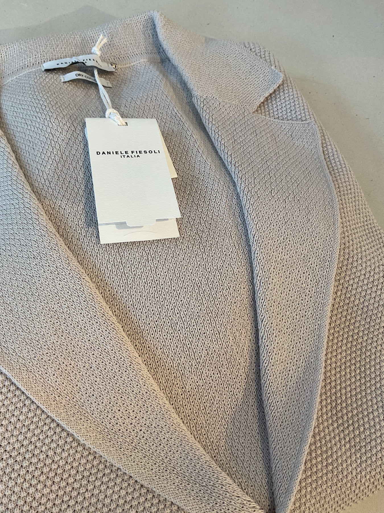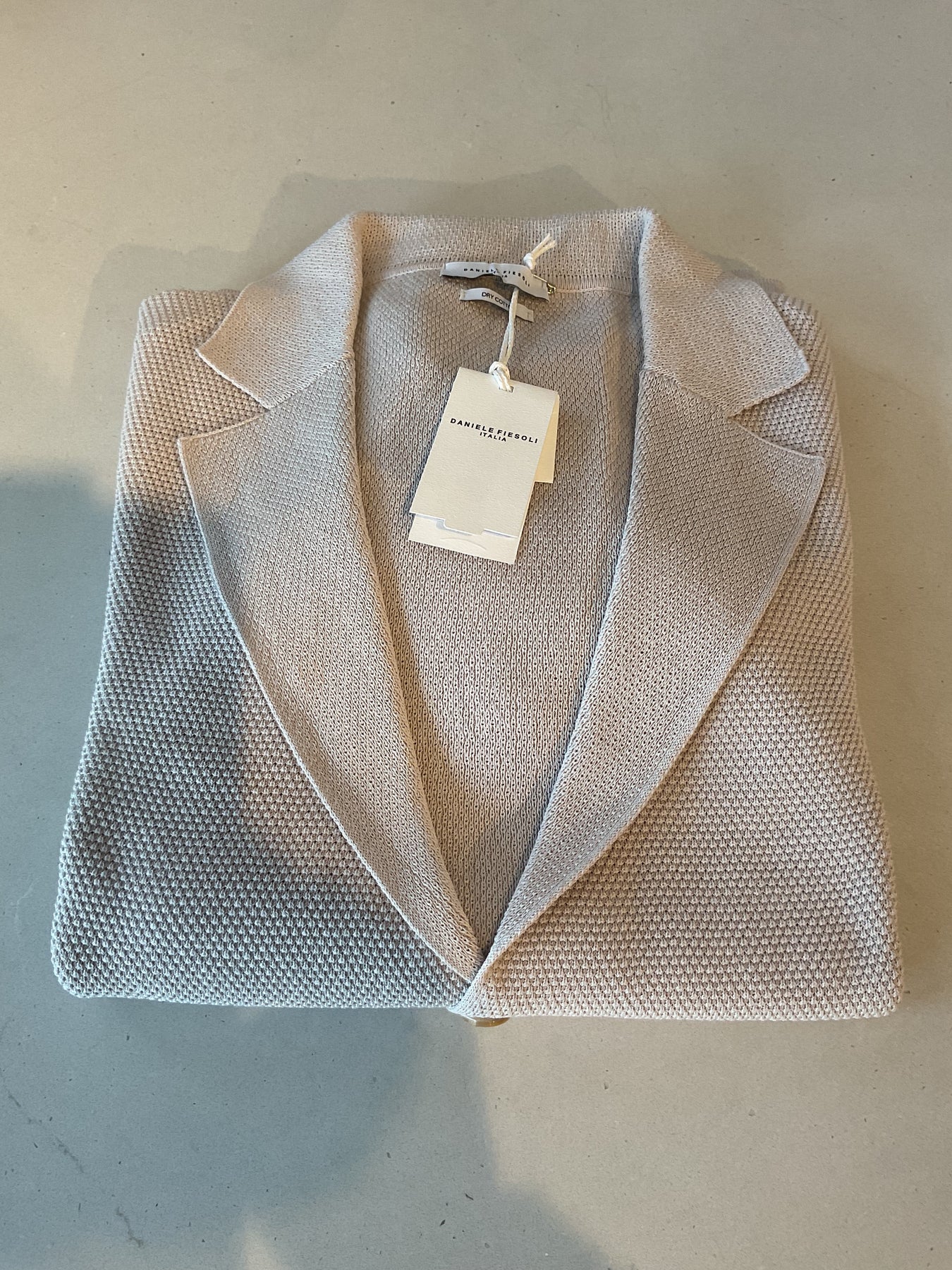 Daniel Fiesoli classic two button knit crepe cotton blazer in a light cream colour. Regular fit and made in Italy.