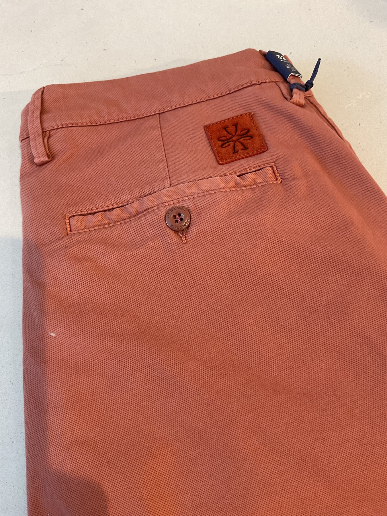 Jacob Cohen classic Bermuda shorts in a light salmon colour. Medium length and appropriate for both dress and casual events. Made in Italy.