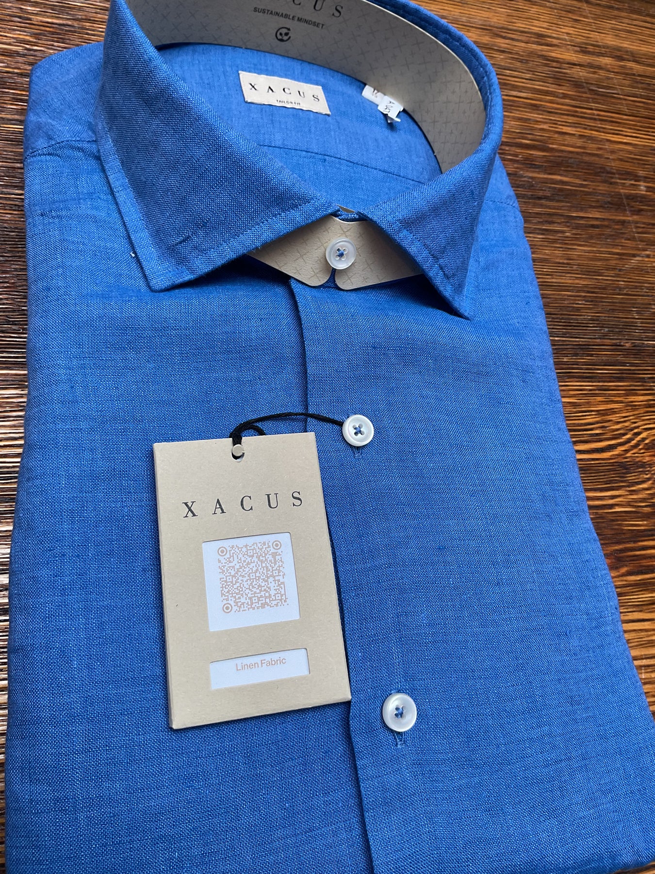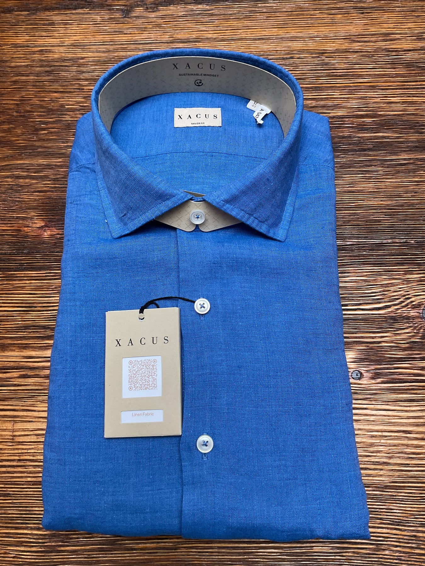 Xacus long sleeve full button linen shirt. Made up in a bright royal blue pure linen fabrication. Modern slim fit and made in Italy.